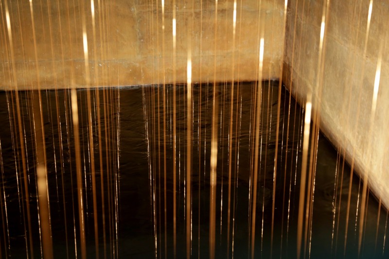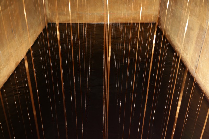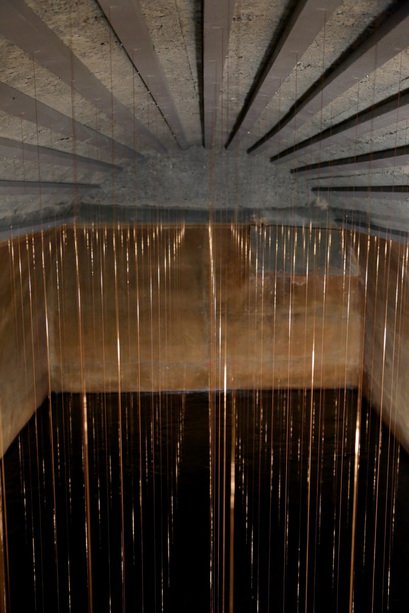 Ater prend place dans l'ancien réservoir d'eau du parc Szilassy, depuis plusieurs décennies désaffecté. En s'approchant, le visiteur –seul·e·x, voire à deux– y découvre l'espace intérieur rempli d'environ 180 fils de cuivre tendus et alignés, partant du plafond, plongeant dans une eau sombre en perpétuel mouvement.
