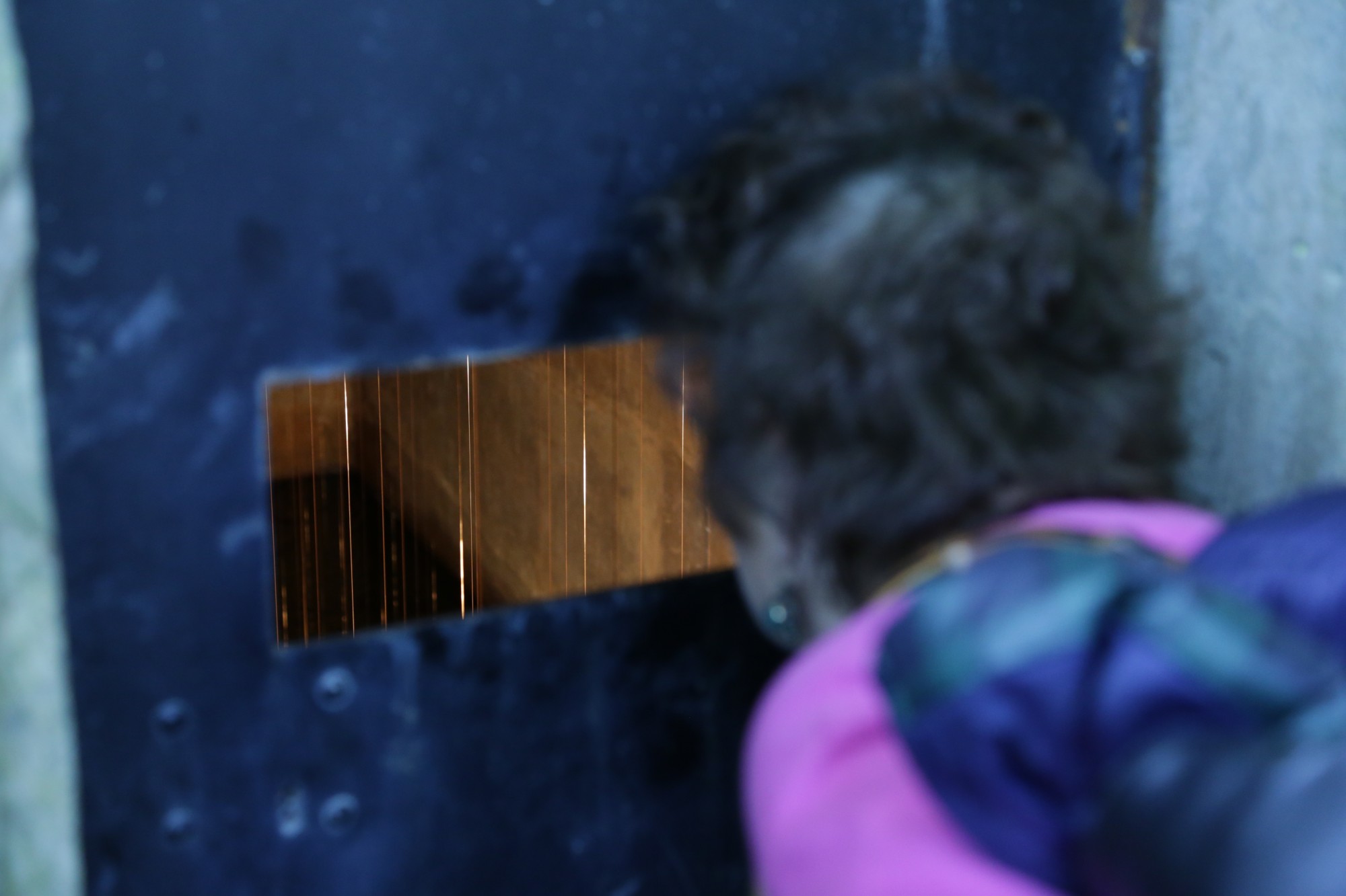 Outre le son de légers clapotis émis par le déplacement de l'eau mis en rotation, on peut entendre des vibrations continues et sensiblement instables. Sans que sa provenance soit aisément repérable, on déduit que les tonalités sont produites par les cordes de cuivre résonnant dans l'espace caverneux. C'est le passage de l'eau qui met en vibration les cordes, jusqu'à les faire entrer en résonance, leur fréquence variant subtilement selon l'intensité du courant et des remous traversant ponctuellement chaque élément.